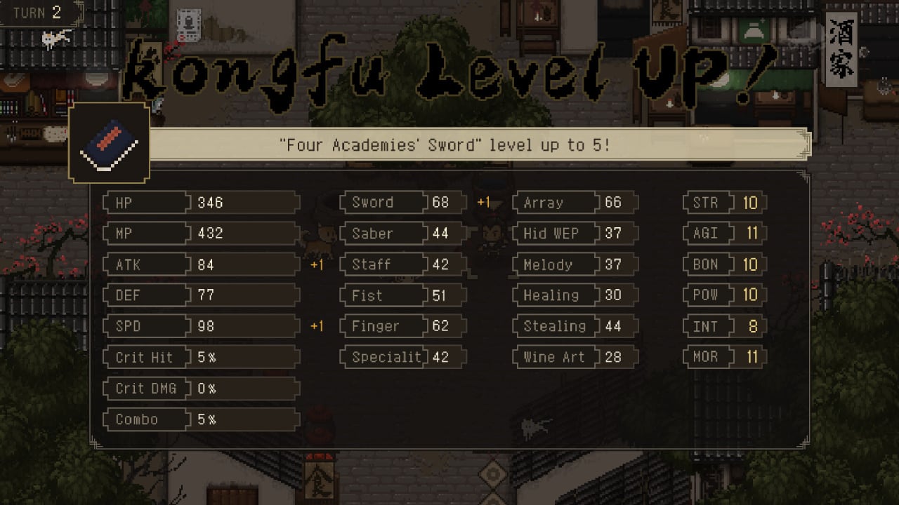 Боевая система состоит из сотен умений и приемов, которые можно комбинировать между собой для достижения лучших результатов. Персонажи способны обучиться орудовать дротиками, посохами, мечами, кулаками и другим вооружением. Каждый предмет имеет собственную характеристику и особенности. Представлены дополнительные активности, как варка вина, создание предметов снаряжения, путешествия и тренировки по боевому искусству.