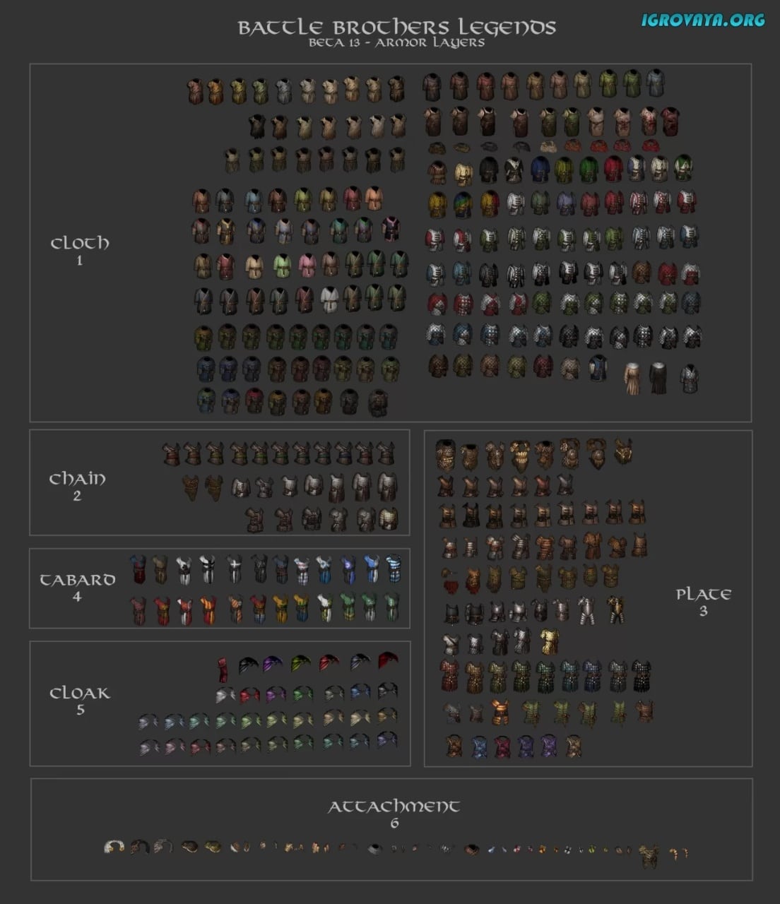 Главные изменения мода коснулись артефактов, оружия, брони, врагов и сотни других предметов. В Battle Brothers Legends добавлено множество нового снаряжения, что в разы расширяет возможности по комбинированию амуниции героев и привносит разнообразие в создание уникального билда юнита. Можно вдоволь экспериментировать с навыками и умениями бойцов. Основа игрового процесса не претерпела особых изменений. Игрокам потребуется собирать свою команду из опытных наемников, чтобы отправиться на исследование фэнтезийных земель.