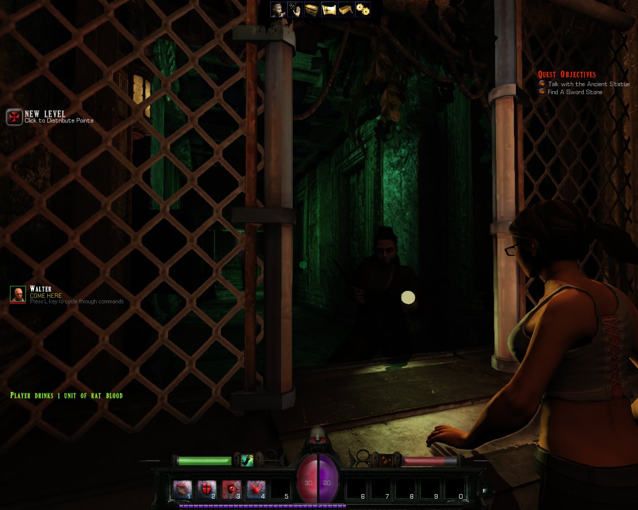 Бутылки с кровью помогают регенерировать выносливости и здоровью, поскольку в данжах трудно отыскать людской источник крови. В начале пути предоставляется возможность выбрать пол, умения и характеристики героя, а также расу: получеловек, дампир или вампир. Классы представлены вором, магом и воином. Скиллы персонажа позволяют призывать крыс и жуков, кастовать фаерболы, молнии и т.д. Квесты в игре можно брать у любой фракции, попутно решая, как выполнить задание и насколько хорошо расположить к себе ту или иную организацию.