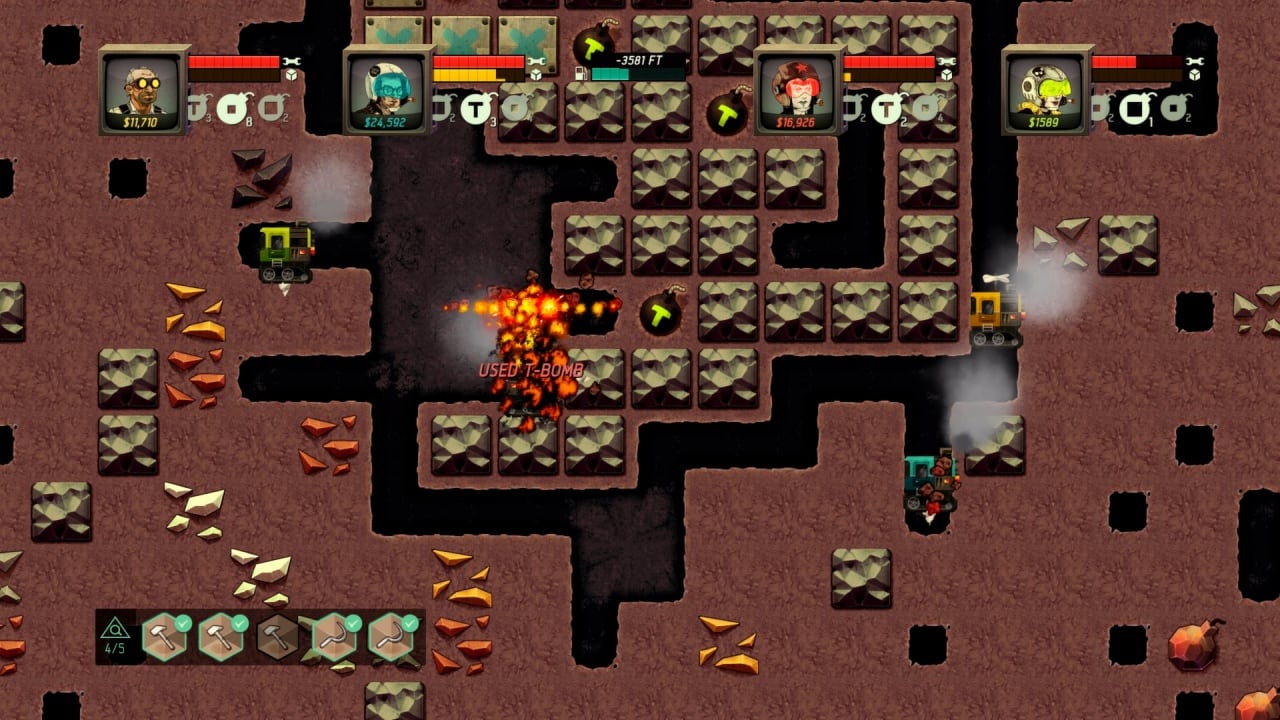 Пробуривая поверхность и магму, некоторые участки могут содержать бомбу. если ее задеть, то снимается огромная часть здоровья. Чем глубже рыть землю, тем лучше и ценнее будут минералы. Преодолев определенный промежуток локации, можно установить базу, чтобы произвести апгрейд и не подниматься снова на поверхность.