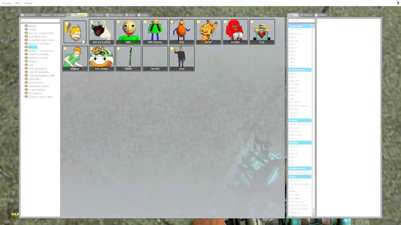 Доступен широкий выбор не только окружающих объектов или блоков, но и вооружения. Представлено множество самых разнообразных модулей, позволяющие сконструировать разные пушки, включая различные футуристические стволы. Также в Garry's Mod 13 можно создавать уникальных персонажей. Все созданные элементы местности можно индивидуально подписывать или называть. Доступно несколько разнообразных и забавных режимов для игры. Позволяется создать сотни уникальных локаций, наполняя их точками интереса или создавая самые необычные места, которые только способны прийти в голову. В инструментарий включены различные объекты из более 10 культовых шутеров, чтобы позволить игроку максимально проявить свою фантазию и продемонстрировать скилл в создании окружения. Огромную роль играет физика. Каждый предмет имеет свои индивидуальные физические свойства, поэтому любые все составляющие карты должны гармонировать и сочетаться между собой.
