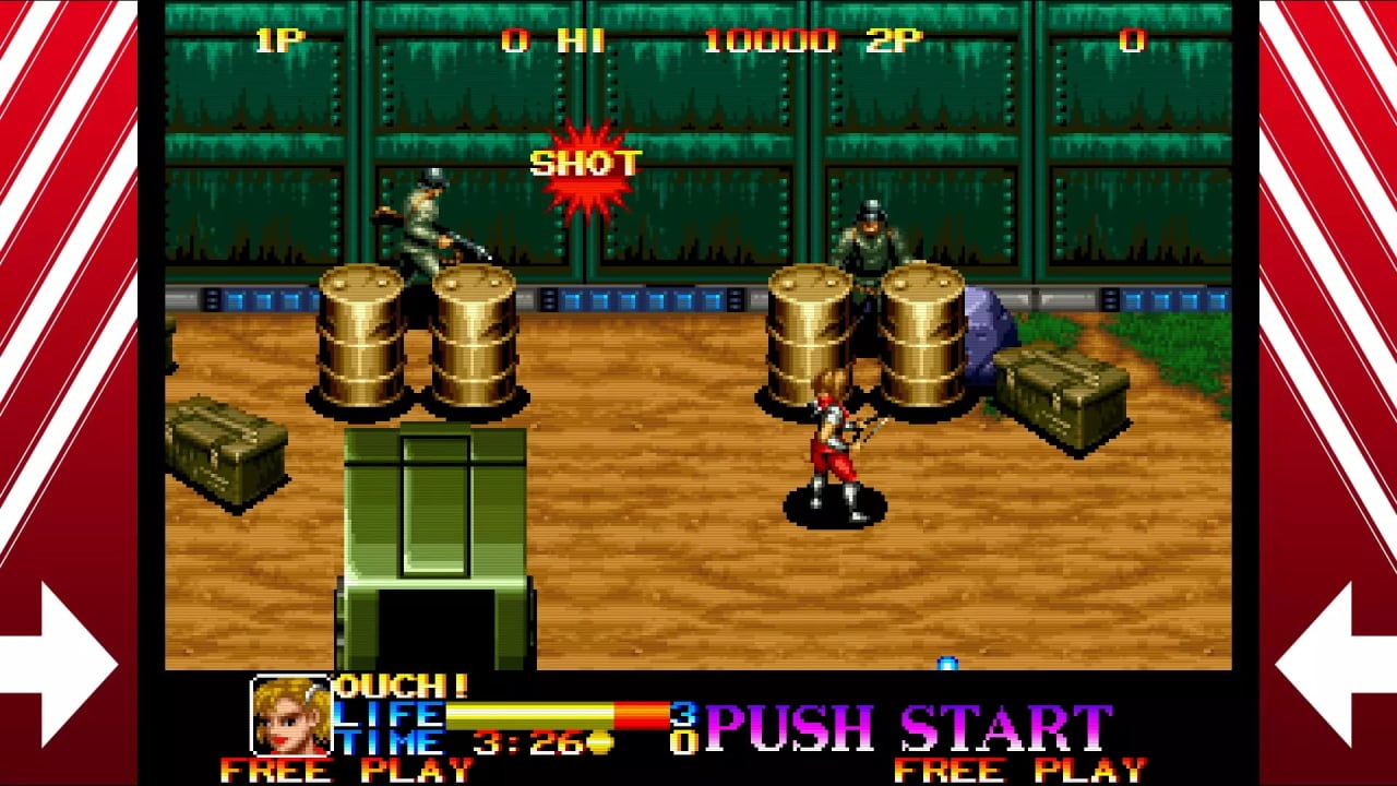 Ninja Commando - это вертикально прокручивающаяся игра в жанре run-and-gun, которая предлагает геймерам погрузиться в стремительное приключение. Тут юзеры берут на себя управление одним из трех современных ниндзя: Джо Тигром, Рю Орлом или Райаром Драконом. Каждый персонаж черпает вдохновение в разных школах ниндзюцу, что придает геймплею уникальный колорит. В центре сюжета - похищение машины времени у злобной корпорации Марс, что приведет игроков в путешествие по различным временным эпохам. Тут реализована перспектива сверху вниз, геймерам предстоит перемещаться по уровням, наполненным врагами и препятствиями.
