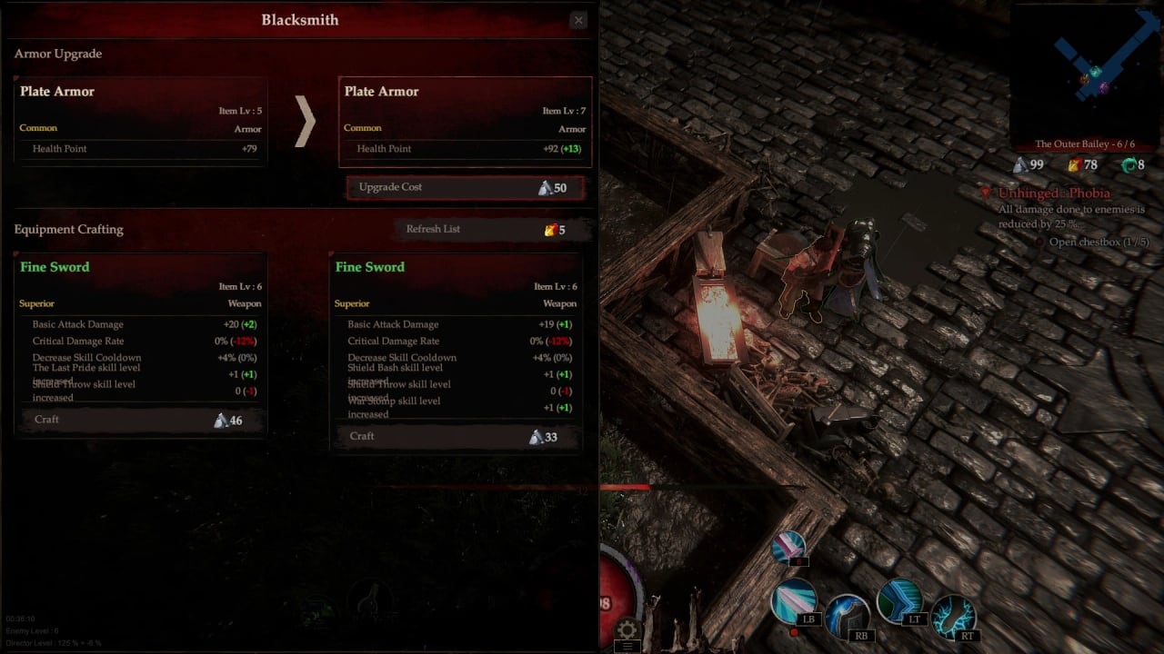 В игре развита система боя, рогалик позволяет выполнять различного рода удары, комбо, использовать разные фишки. Также у каждого героя будут свои умения. Так, есть смелый рыцарь, который борется своим мечом, девушка-разбойница, оборотень, и еще одни бородатый, и весьма подозрительный воин. При проигрыше персонаж возвращается в убежище, прогресс снижается, но он может снова пойти сражаться. Можно прокачивать древо навыков, используя глифы. Перед боем выбирается число умений персов, которые будут далее использоваться.