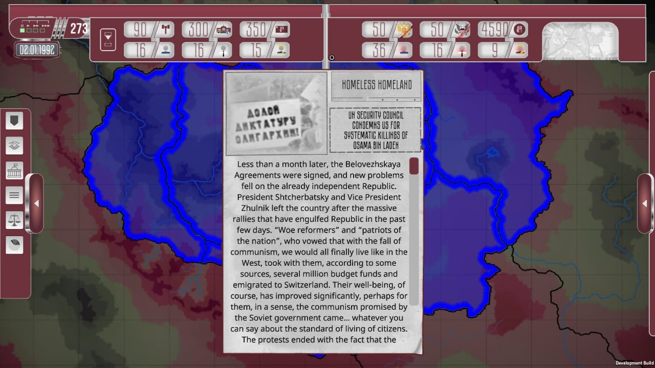 Временными рамками установлены 1992-2004 года, что отображается в использовании общемировых проблем тех лет. Пользователю нужно противостоять остальным политическим силам за власть всевозможными путями, применяя как легальные методы поднятия рейтинга, так и незаконные способы уничтожения авторитета оппонентов. Каждое действие геймера будет иметь определённое последствие, что в будущем повлияет на развитие событий и приближает к той или иной концовке однопользовательской кампании.