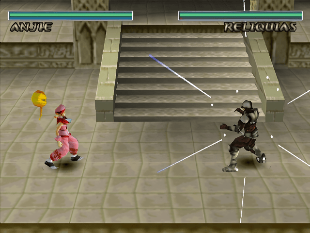 Представьте себе файтинг, основанный на игре "Камень, бумага, ножницы". У каждой атаки здесь есть свои сильные и слабые стороны. Кнопка Square выпускает шквал быстрых, слабых ударов, а Triangle наносит более медленный, но тяжелый удар. Кружок позволяет уклониться в сторону, открывая противника для внезапной атаки сзади. По ходу боя полоска заряда в углу заполняется, превращаясь из красной в синюю. Это сигнал к применению магии.