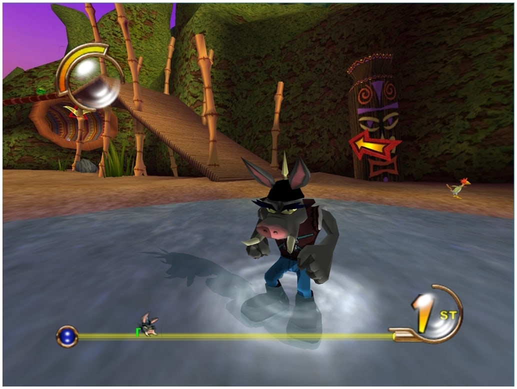 Не подозревая об истинных мотивах Хекса, гонщики мчатся по ярким пейзажам. Короткие пути прокладываются через местность, давая шанс вырваться вперед. Но будьте осторожны! Из-под земли извергаются шары магмы, скрываются липкие смоляные ямы, подстерегают плотоядные растения - все это усугубляет бешеный бег. Что же станет главным призом за весь этот хаос? Не золото, не слава, а самая обычная на первый взгляд свинья. По крайней мере, так думают все. Сид, один из гонщиков с блеском в глазах, настаивает, что на самом деле это Волшебный скипетр. Хекс находит эту деталь очень неудобной.