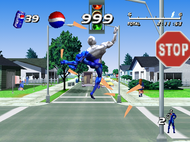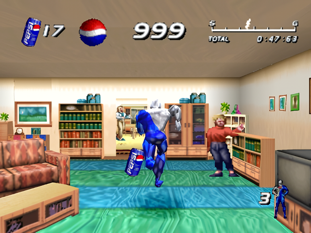 Pepsiman – известная на PlayStation игра в жанре экшен. Главный герой – супергерой Пепсимен, талисман Пепси, вынужден бежать, уворачиваясь от препятствий, чтобы напоить страдающих от жажды людей.