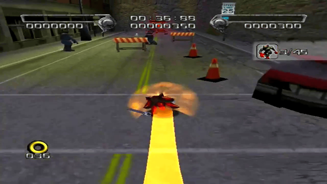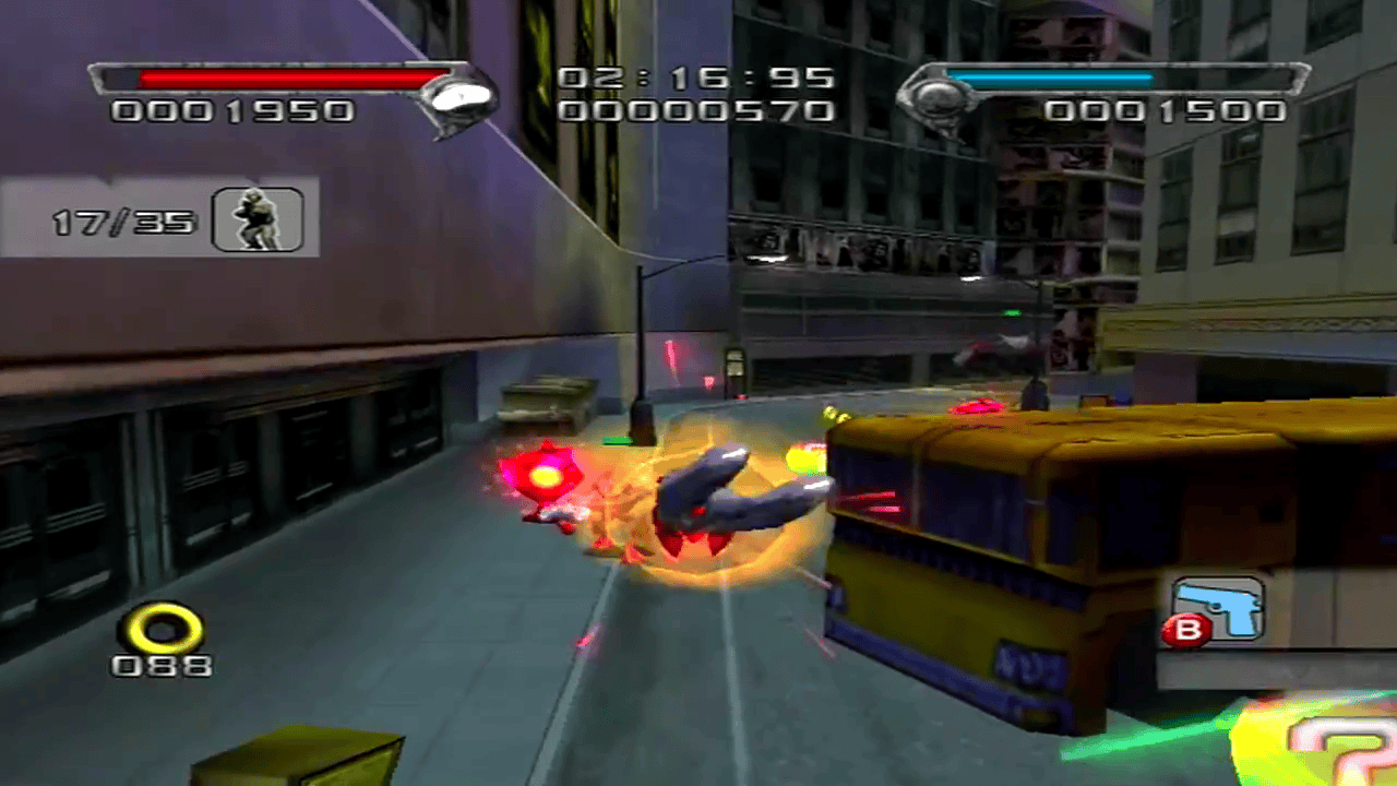 Кстати, об экшене: в Shadow the Hedgehog появились элементы стрельбы. Теперь вы не просто собираете кольца и прыгаете на бадниках. Теперь в вашем распоряжении целый арсенал оружия, позволяющий прокладывать стратегический путь через врагов. Это может показаться странным для платформера, но это добавляет удивительный уровень глубины в игровой процесс. К тому же, кому бы не хотелось увидеть, как Шэдоу расправляется с роботами из пистолета-пулемета?