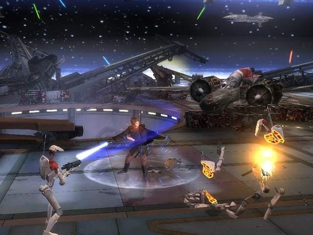 Star Wars: Episode 3 - Revenge of the Sith позволит вам оказаться в самом сердце финального акта фильма. Следите за развитием сюжета на экране, но на этот раз вы сами определяете, что делать. Играйте за Энакина Скайуокера или Оби-Вана Кеноби - две стороны Силы и судьбы, которые вот-вот столкнутся. Энакин - вихрь ярости светового меча, а Оби-Ван - мастер защиты. Каждый персонаж отличается от других, у него есть свои сильные и слабые стороны.