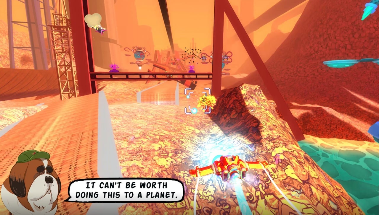 Геймплей включает 10 последовательных уровней с альтернативными дорогами и возможностями для прохождения. Выполняя миссии, геймер воспользуется бомбами дистанционного управления, самонаводящимися ракетами, щитом парирования или гиперпучком. Перед заданием потребуется выбрать 1 из 4 типов вооружения с индивидуальными возможностями и видом атаки. Юзер способен путешествовать по всей галактике и исследовать разнообразную среду. Собачий инстинкт позволит замедлять время, чтобы увернуться от пули или точно прицелиться.