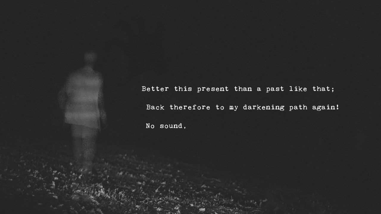 Визуальный стиль и сюжет игры передают то, какие мысли они почерпнули из этих стихов. Все задники анимированы, а в каждую строчку текста вложено непомерно много души. Игровой процесс представлен в виде визуального романа, где необходимо следовать четкой линии сюжета. Однако здесь важно пережить экспириенс, который произошел с самим автором произведения. Добро пожаловать в сюрреалистичный и пугающий мир!