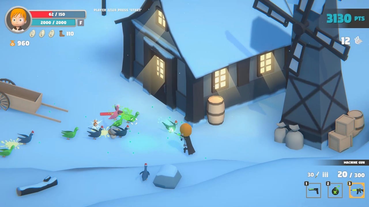 На выбор пользователей предоставляется 3 персонажа с отличающимися наборами способностей у каждого. Комбинирование плюсов каждого протагониста компенсирует их недостатки и даёт преимущество над ИИ. Голуби также разнятся между собой, разделяясь на классы. Уничтожая одну волну за другой, игроки накапливают выпадаемые бонусы с тел поверженных птиц, получая усиления некоторых скиллов, оружия и дополнительные патроны. Любой геймер подберёт тот вид вооружения, который больше всего подойдёт под стиль игры, что позитивно скажется на итоговых результатах.
