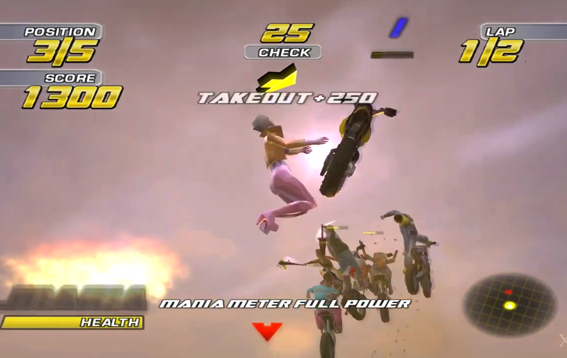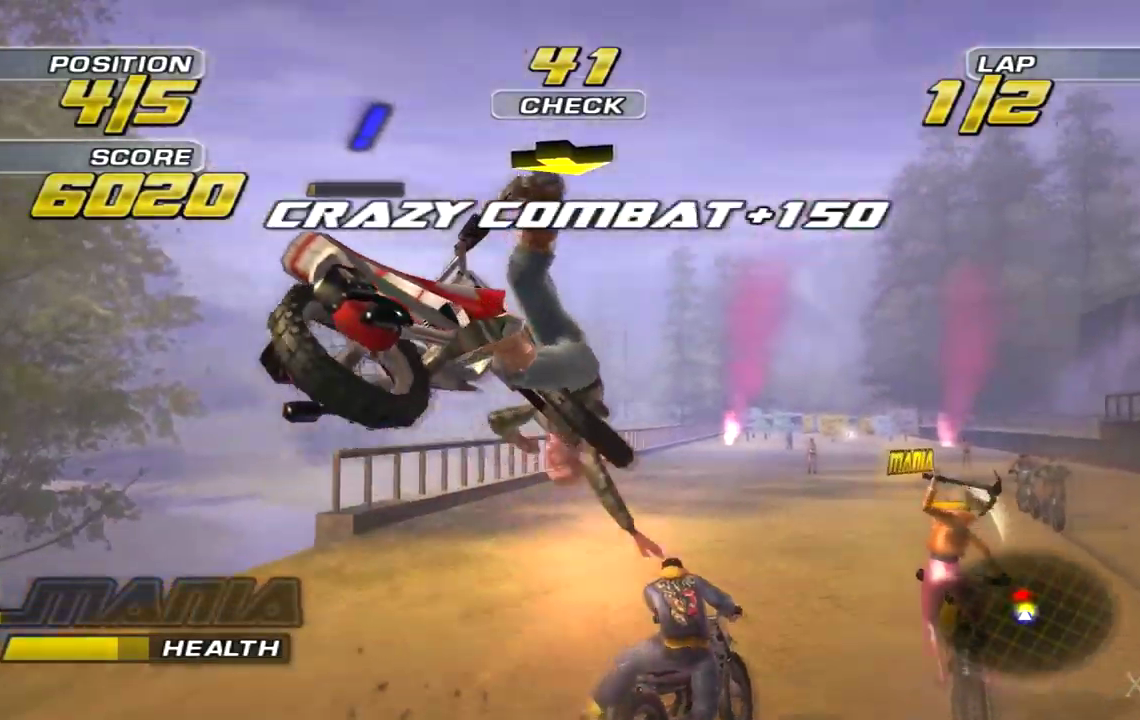 Motocross Mania 3 погружает юзеров в мир высокооктановых гонок с изюминкой - автомобильными боями. Геймеры мчатся по трассам, каждая из которых таит в себе уникальные сложности и стратегические возможности. Чтобы получить преимущество, они могут обрушить на противников целый арсенал оружия. Тайтл поощряет смелые маневры и атаки с воздуха. Благодаря нацеленности на выполнение впечатляющих трюков каждый круг становится захватывающим и непредсказуемым. Специальный "счетчик мании" позволяет геймерам замедлять время для еще более точных атак или хитроумных маневров.