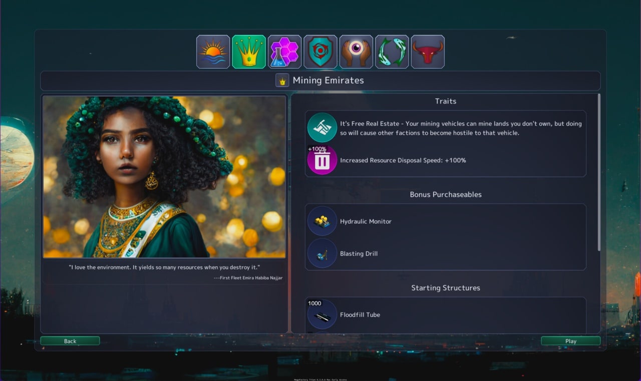 - Процедурная генерация вселенной, что формирует случайным образом шахты, ландшафт на планете и т.п.