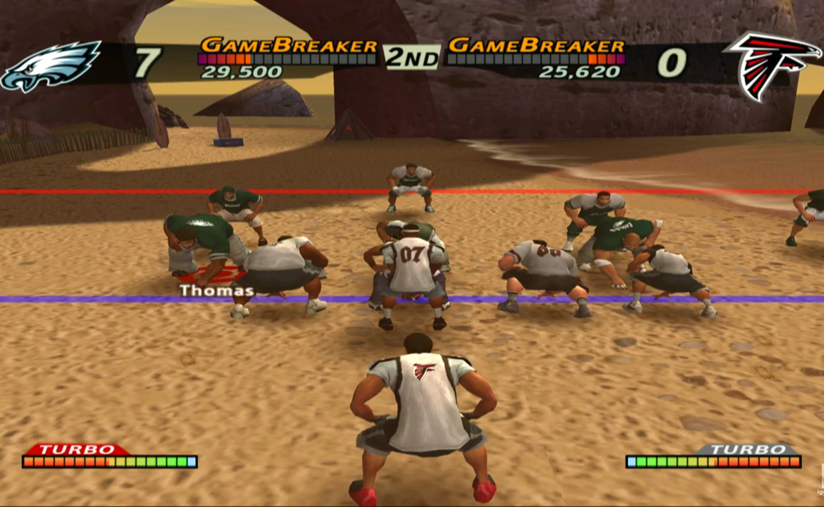 Создайте команду своей мечты в NFL Street. Тут вы можете выбрать из списка действующих звезд НФЛ и легенд железной дороги. Набирайте команду, подстраивайте ее под свое стратегическое видение и бегите по асфальту. Хотите доминировать с грозным бегуном или метким пасующим? Выбор за вами. Быстрые выставочные матчи или сезонные испытания - тайтл подходит для всех стилей игры.