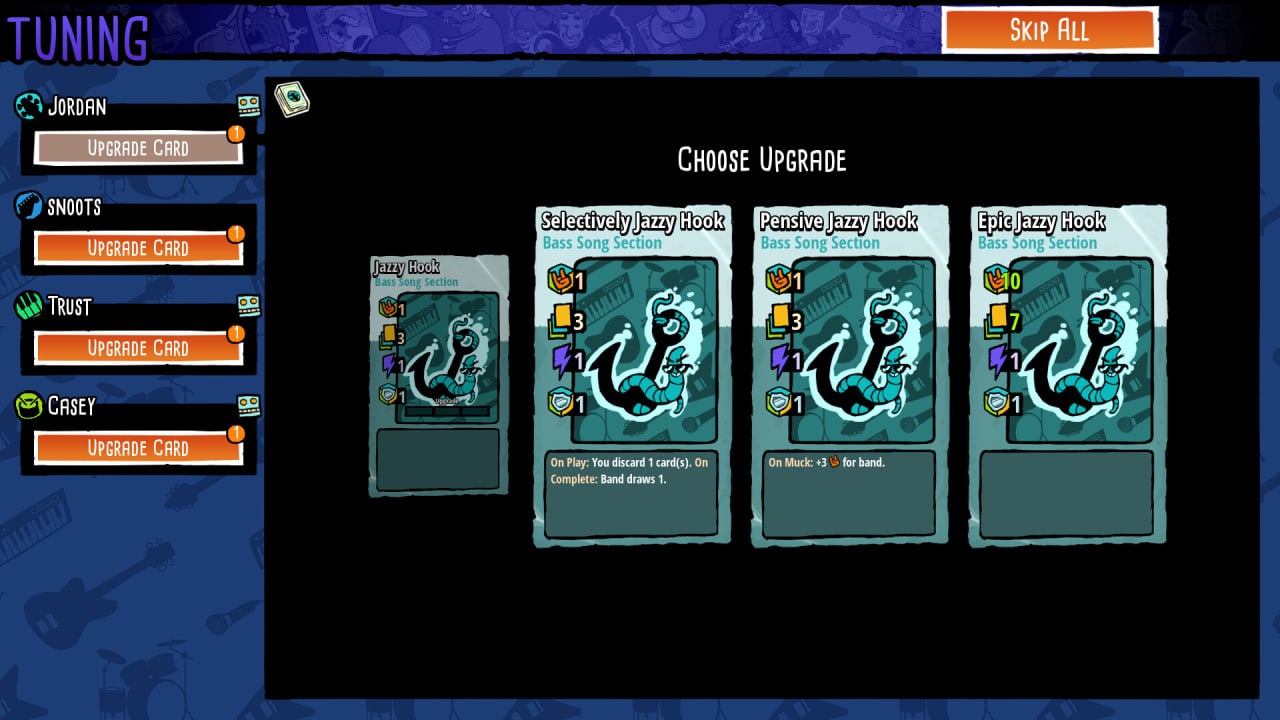 Battle Bands: Rock and Roll Deckbuilder – это многопользовательский рогалик-декбилдер с элементами королевской битвы, в котором есть и одиночный режим. Главная особенность инди-проекта заключается в его тематике. Игра посвящена битвам рок-групп. Разные команды борются за звание легенды рок-н-ролла в выдуманном городе Рифф-Сити. Игровой процесс здесь основан на музыке. Пошаговый геймплей построен на координации действий с другими членами группы. При отсутствии живых игроков роль товарищей по команде берут себя боты. Каждая банда состоит из четырех музыкантов: клавишника, барабанщика, гитариста и басиста. У всех них имеется своя персональная колода. Её содержимое можно улучшать и менять. В игре есть сотни карточек. Они накладывают бафы или дебафы, вступают между собой в синергию и так далее.