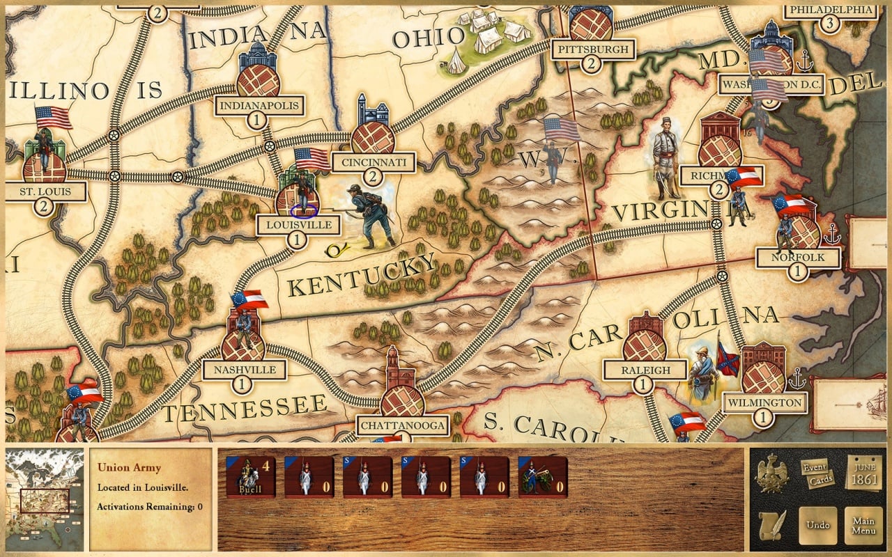 Приобретайте карты за внутриигровую валюту или добывайте их в сражениях, реализующие специальные улучшения для юнитов. Карты предоставляют больше шансов на победу, способны моментально вызвать подмогу и повлиять на исход сражений между Севером и Югом. В сражениях в море управляйте канонерскими лодками, кораблями и бомбардируйте оборонительные сооружения на портах.
