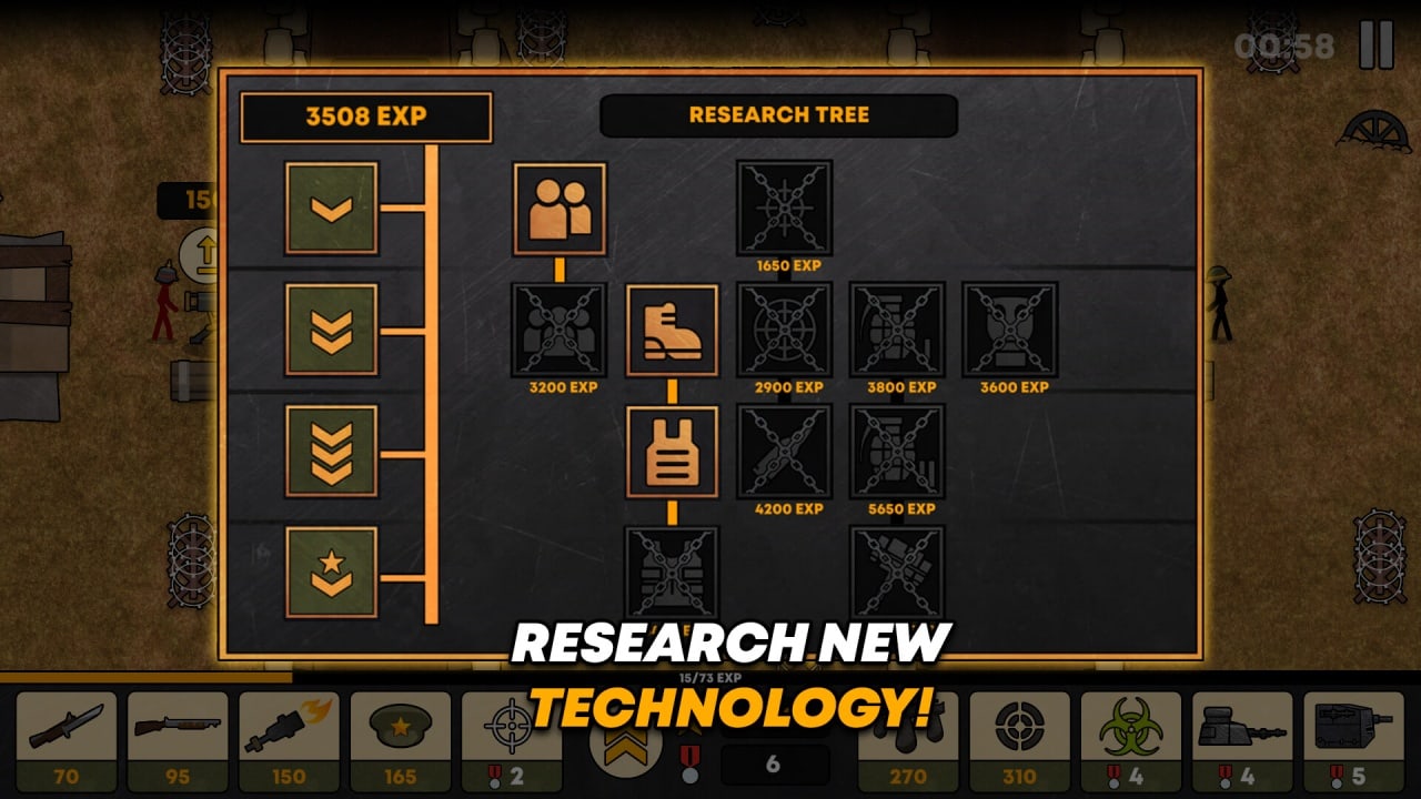 Stickman Trenches – это сложная стратегия, в которой важно научиться комбинировать оборону и атаку. В режиме реального времени пользователь обязан управлять солдатами и улучшать собственные окопы, которые будут способны выдержать любую атаку. Помимо обычных бойцов присутствует военная техника того времени – примитивные танки и артиллерия. Также все воины вооружены различным оружием – пистолетами, винтовками, пулеметами и даже первыми моделями огнеметов.