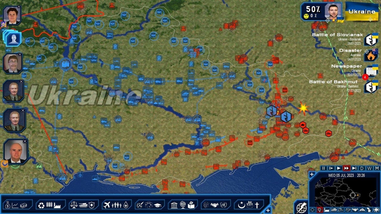 - Детальное моделирование войны в Украине, развязанную фашистским бандформированием с новыми элементами варгейма, такими как окопы, мины, артиллерия, боевой дух войск, дроны-смертники и др. Вы можете играть как за Украину, так и за страну 404 в новом сценарии, отражающем последние данные и события.