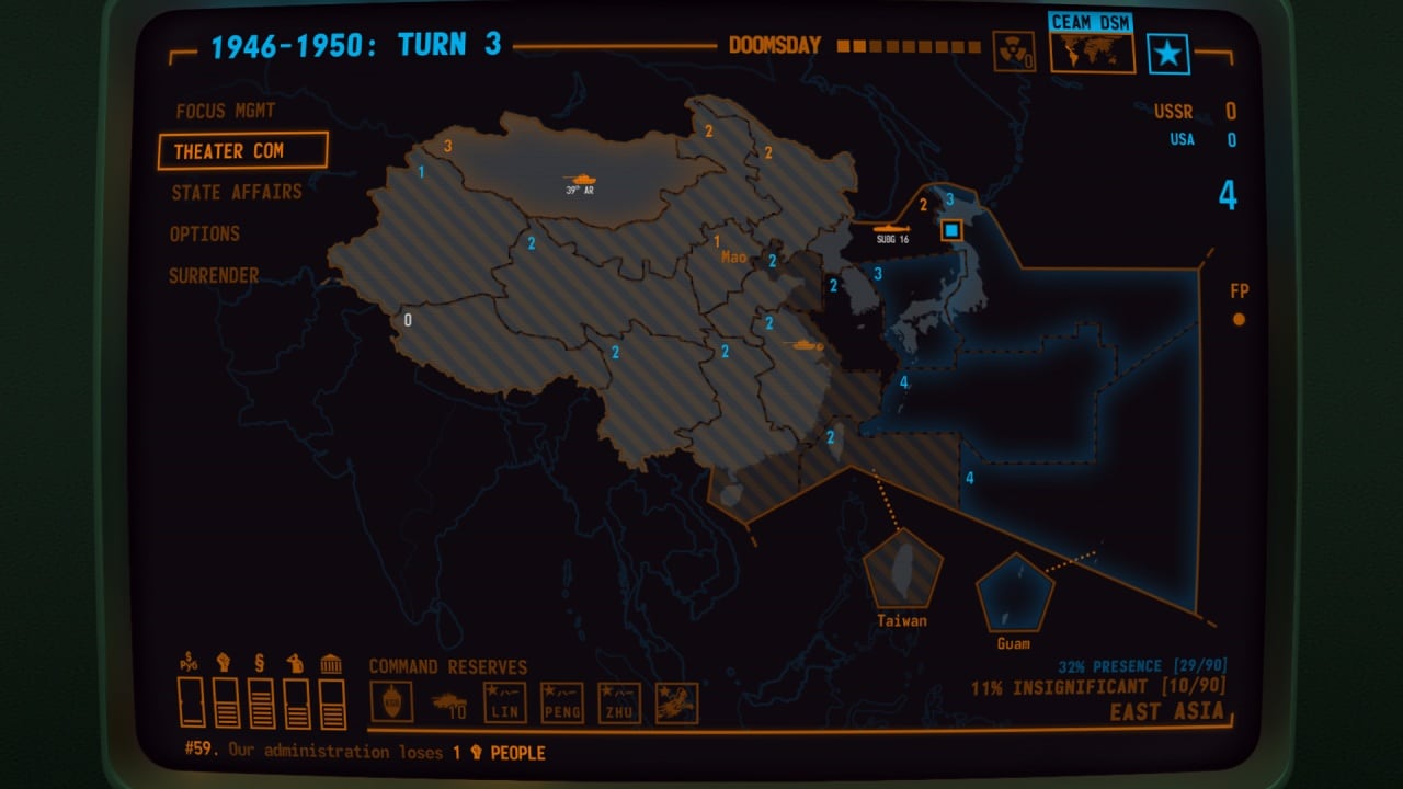 Механики соблюдают все аспекты стратегических игр, позволяя заниматься вопросами экономики, разведки, войны и т.д. Можно вести дипломатические отношения с другими странами, обмениваясь ресурсами или стараясь заполучить поддержку других держав. Представлено 40 лидеров, среди которых Мао Цзэдун, Маргарет Тэтчер, Эрнесто Че Гевара и т.д. Каждый игрок выбирает свой путь развития: вступить в космическую гонку, пытаться получить технологическое превосходство, создать ядерные бомбы и т.п. Есть встроенный редактор карт и сценариев.