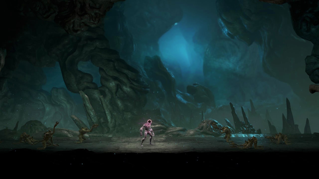 GRIME – 2,5D метроидвания с развитой боевкой. Играем за обнаженного гуманоида с черной дырой вместо головы. Персонаж умеет временно увеличивать её размеры и всасывать туда врагов. Поглощение недругов делает героя сильнее и даёт ему новые способности. Окружение тут разнообразное. Есть пещеры, города, пустыни и т. д.