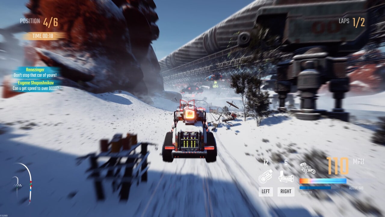 Цель каждого заезда состоит в том, чтобы добраться до финиша раньше соперников. Чтобы занять первое место, потребуется не только вовремя газовать и хорошо рулить. В игре необходимо правильно использовать цепные бустеры, чтобы сохранять инерцию. Присутствует возможность прокачивать транспорт. Поездки происходят на закольцованных трассах. У инди-проекта минималистичный интерфейс. На экране отображается текущий круг, скорость и позиция.