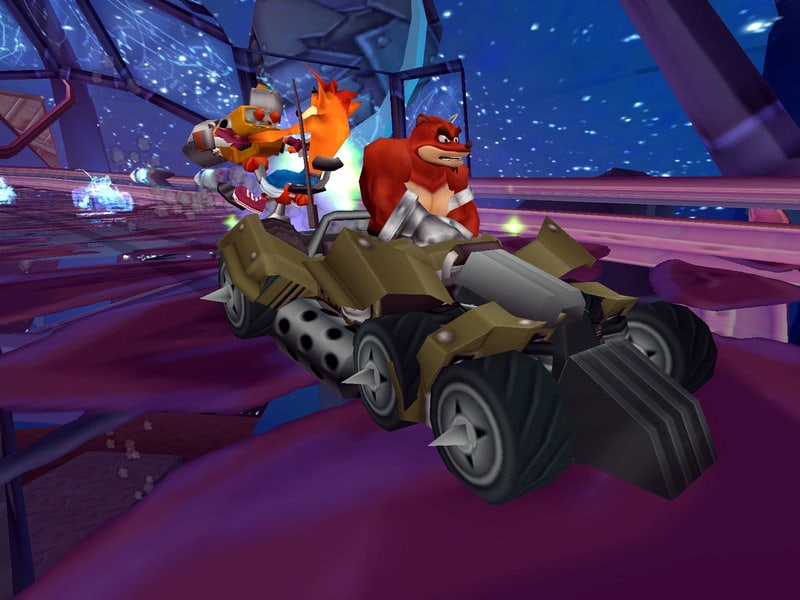 Но Crash Tag Team Racing - это не только про то, как нажимать на педаль газа. Фирменная механика - гениальный "Fusion", когда картинги могут сливаться в один супермощный джаггернаут. Этот автомобильный Вольтрон превращает гоночную трассу в динамичное поле боя, позволяя игрокам обрушить на противников ярость турели или разработать стратегию идеального слияния, чтобы покорить сложную местность. Помимо захватывающих гонок, тайтл не теряет свежести благодаря платформерным сегментам, которые отправляют Крэша в бегство по скрытым закоулкам и бонусным уровням.