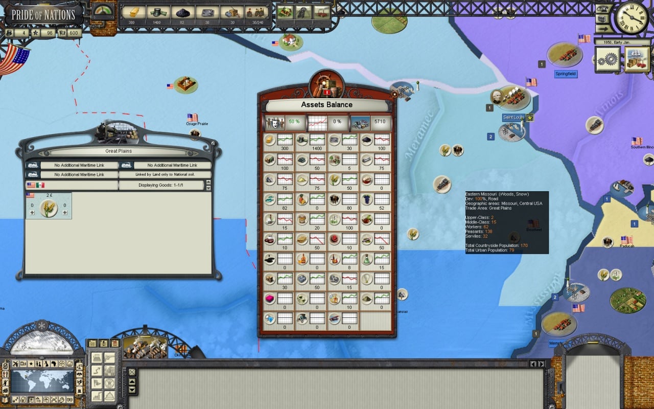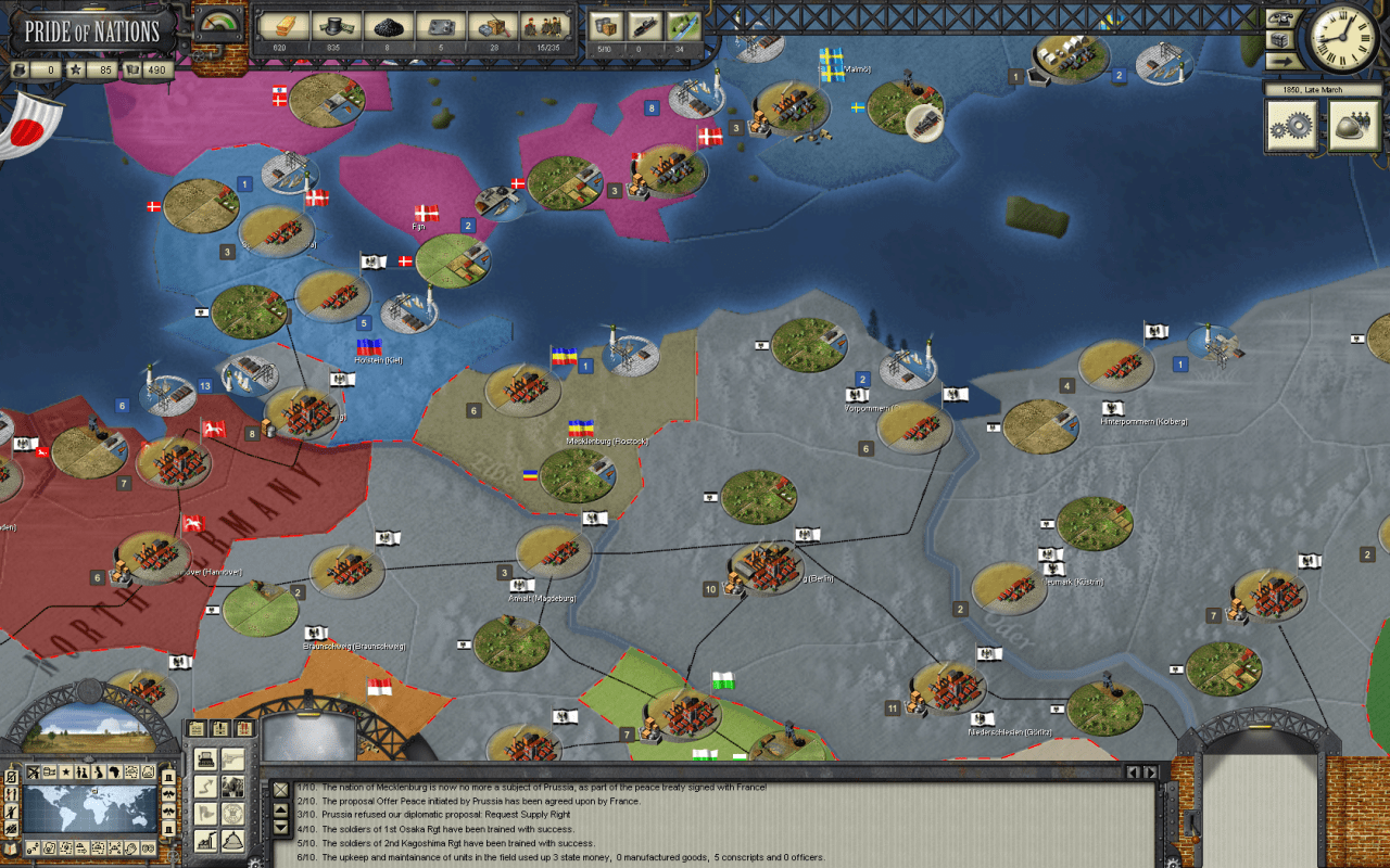 Pride of Nations – пошаговая стратегия, где геймеру доверяется роль верховного лидера целой страны, с целью расширения границ за счёт колонизации и войн с соседними государствами, а также для проведения индустриализации в своей державе, ведь временной отрезок старта игры – 19 век. Каждая из 8 фракций стартует с реальными границами на 1850 год, после этого её лидеры должны сделать свои территории самыми влиятельными в мире.
