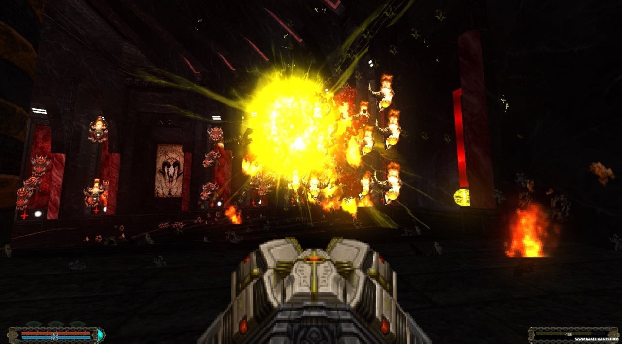 Упоминание о размерах уровней в Age of Hell сделано не просто так. Часть локаций действительно огромны, и на их прохождение может понадобиться до 30 минут. Подземелья с высокими потолками, темницы, пещеры, ритуальные комнаты и прочие места могут содержать до десятка ответвлений, где персонажа поджидают новые виды врагов. Скелетоны на четырех конечностях, зомби, слизни, плюющиеся кислотой, волки и другие существа обладают разными показателями стойкости, поэтому для их устранения следует использовать разные типы вооружения. К счастью, здесь имеется достаточно образцов для формирования полноценного арсенала: пистолет, однозарядное ружье, молот, шестиствольный пулемет и ракетная установка позволят совладать даже с боссами, которые значительно превосходят стандартных оппонентов. Как и в старинных шутерах, на каждой локации разбросаны коробки с боеприпасами, аптечками и фрагментами брони, позволяющими восполнить потери после очередной стычки. Сохранилась и высокая динамика, ставшая привычной для такого рода проектов.