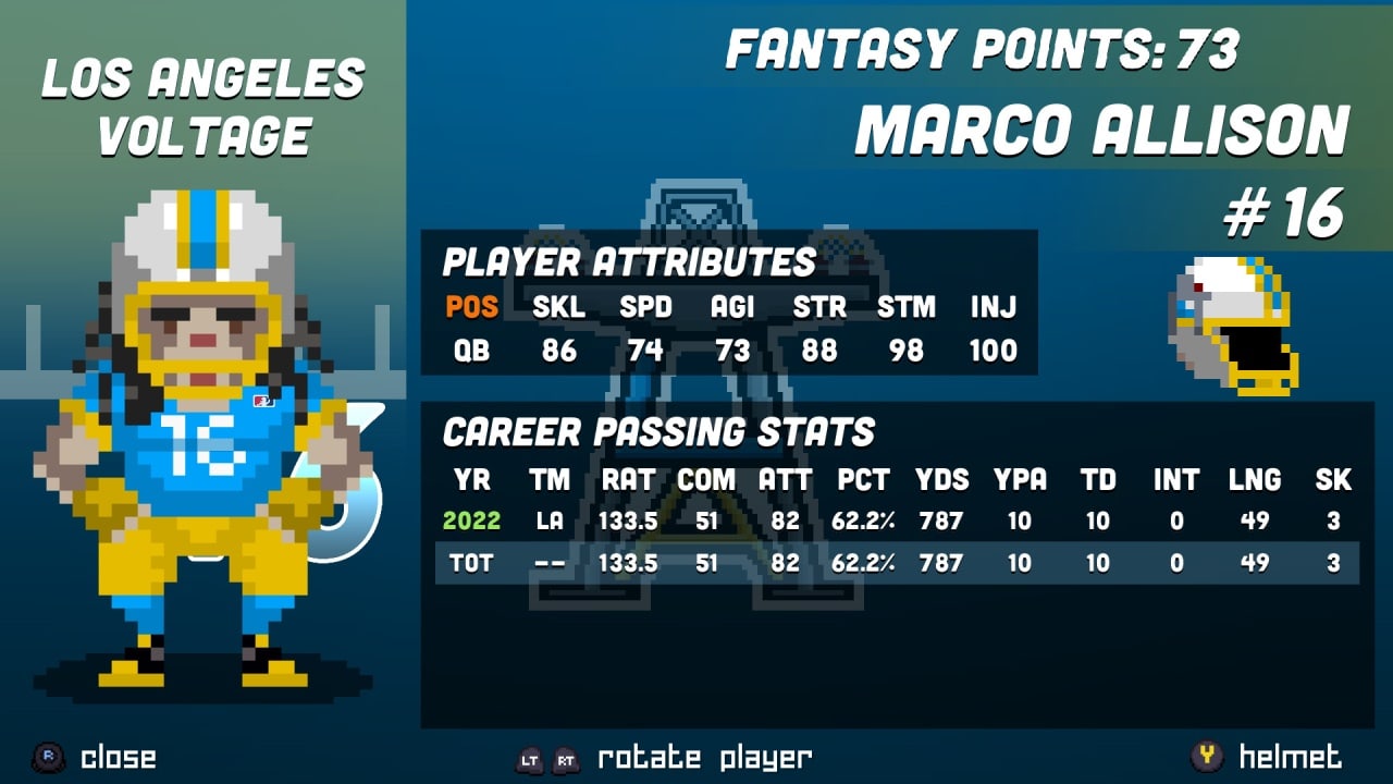 Продвигаясь по одной из выбранных сезонных лиг, предстоит пройти 17-недельное расписание из матчей, где придется отслеживать за полноценной статистикой игроков, а также наблюдать за еженедельными новостями и итоговыми результатами других футбольных команд. Пользователи могут выбирать между 16 предложенными клубами, чтобы отправиться на чемпионат за кубок мира, сражаясь со своими соперниками на поле.