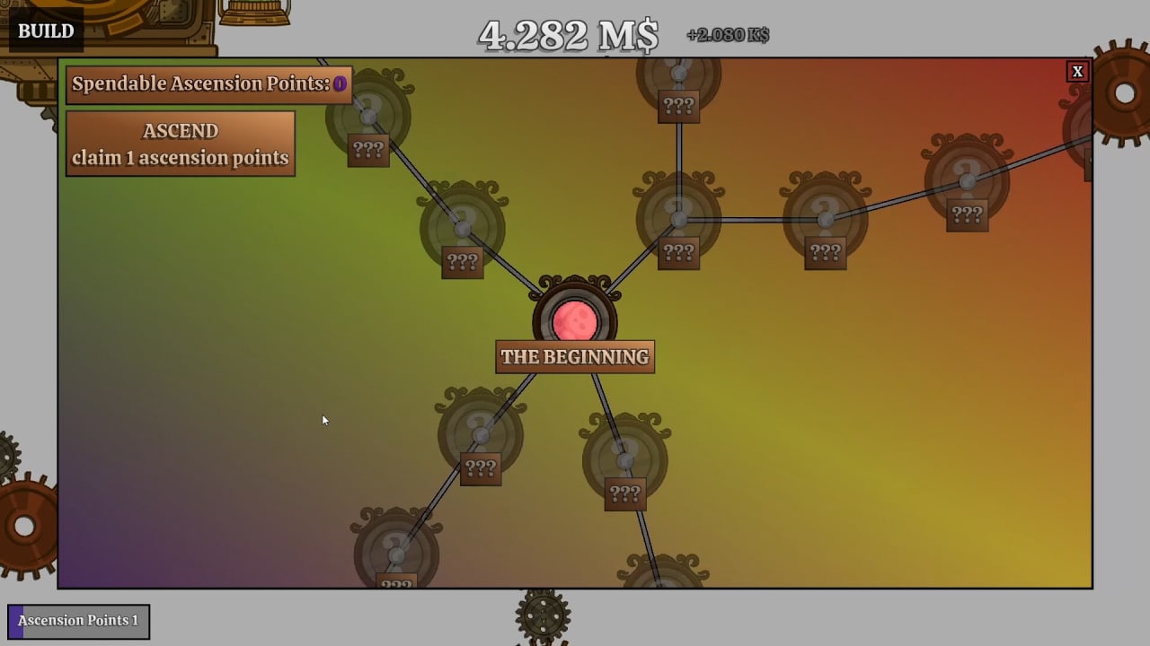 Углубляясь в прохождение, вы в конце концов достигнете того момента, когда прогресс покажется вам медленным. Но не стоит бояться, ведь Idling Gears предлагает умный поворот - восхождение. Когда вы поднимаетесь по карьерной лестнице, вы получаете постоянный прирост производительности, что позволяет начать игру с чистого листа и получить еще больший потенциал для накопления богатства. Игра также обещает скрытые сюрпризы по всей карте, что позволяет не терять интерес к тому, что ждет их за углом. Не будем спойлерить о сюрпризах, но они привносят в ваше путешествие элемент таинственности и азарта. По сути, Idling Gears - это простая игра в жанре "кликер-таймкиллер", которая предлагает бесчисленные часы развлечений и множество достижений.