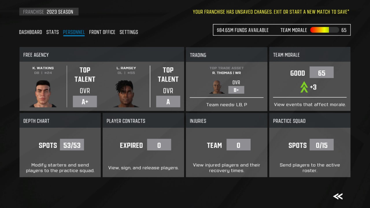 Возможности настройки геймплея весьма обширны. Редактор игрового процесса позволяет настраивать команды по своему вкусу, а набор создателей команд предлагает новые логотипы для придания им индивидуальности. Можно даже удалить созданные пользователем команды с чистого листа. Любители франчайзингового режима по достоинству оценят расширенные размеры лиг, улучшенное управление командами с помощью искусственного интеллекта, а также обширное меню активности команд, в котором отслеживаются перемещения футболистов. Этот режим обогащен множеством опций настройки лиги, контрактами спортсменов, сделками, травмами и динамической многоуровневой структурой лиги. В разделе "Разное" доработаны QB Run, редактирование атрибутов и составление расписания. Внимание к деталям проявляется в управлении таблицей глубины, автоматических заменах и управлении травмами. Кроме того, Axis Football 2024 предлагает различные режимы, включая режим "Игрок против ИИ", "Тренер", "Зритель", "Локальный игрок против игрока" и захватывающий режим "Франшиза".