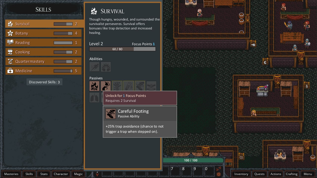 При создании персонажа вам предстоит выбрать из 7 доступных фонов и более чем 30 стартовых характеристик. Кастомизация боя также не оставляет равнодушным: более 50 способностей боя и 12 типов вооружения, каждый со своим уникальным стилем. Сражайтесь с десятками уникальных видов противников, используя сотни предметов, таких как зелья, броня, медицинские препараты и книги с читаемой в игре литературой. Динамические задания и награды генерируются на основе ролей NPC в каждом городе. Не забудьте про умения! Простое повышение уровня умений не разблокирует все возможности. Игроки должны исследовать мир, посещать тренеров и находить самостоятельно новые способы укрепления своих навыков. Каждое умение имеет пассивный бонус и множество улучшений, которые можно изучить, разблокировав новые бонусы и способности. Используйте крафт, чтобы создавать еду, зелья и медикаменты, улучшать и поддерживать свою броню, а также усиливать свои крафтовые возможности, покупая или находя рецепты.