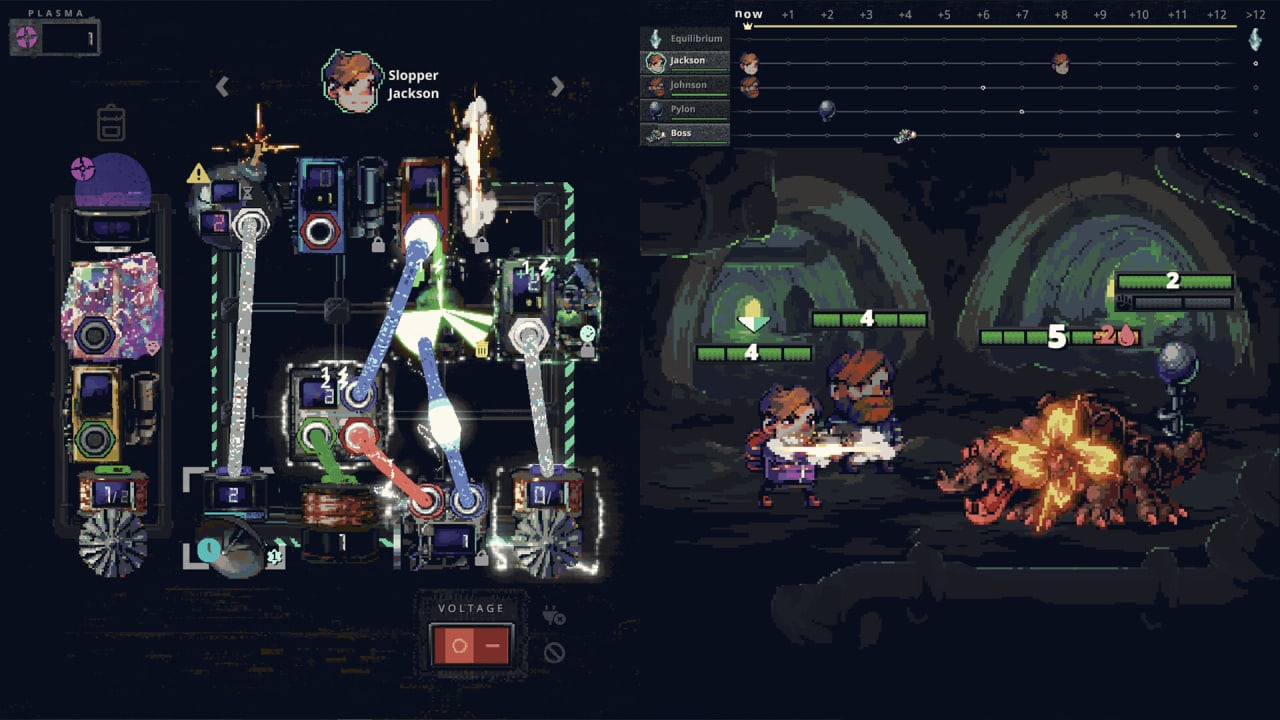 Rogue Voltage погружает вас в мир безумной науки и чудовищного хаоса. Эта инди-игра сочетает в себе элементы roguelike и механику автоматизации, в которой вам предстоит создать свои собственные боевые способности. Забудьте о нажатии кнопок - здесь главенствует стратегия. Каждый ход вам предстоит управлять ресурсами. Выпустить мощный взрыв, исцелить себя зельем или накопить энергию для будущего наступления? Выбор за вами, и каждое решение может склонить чашу весов в битве.