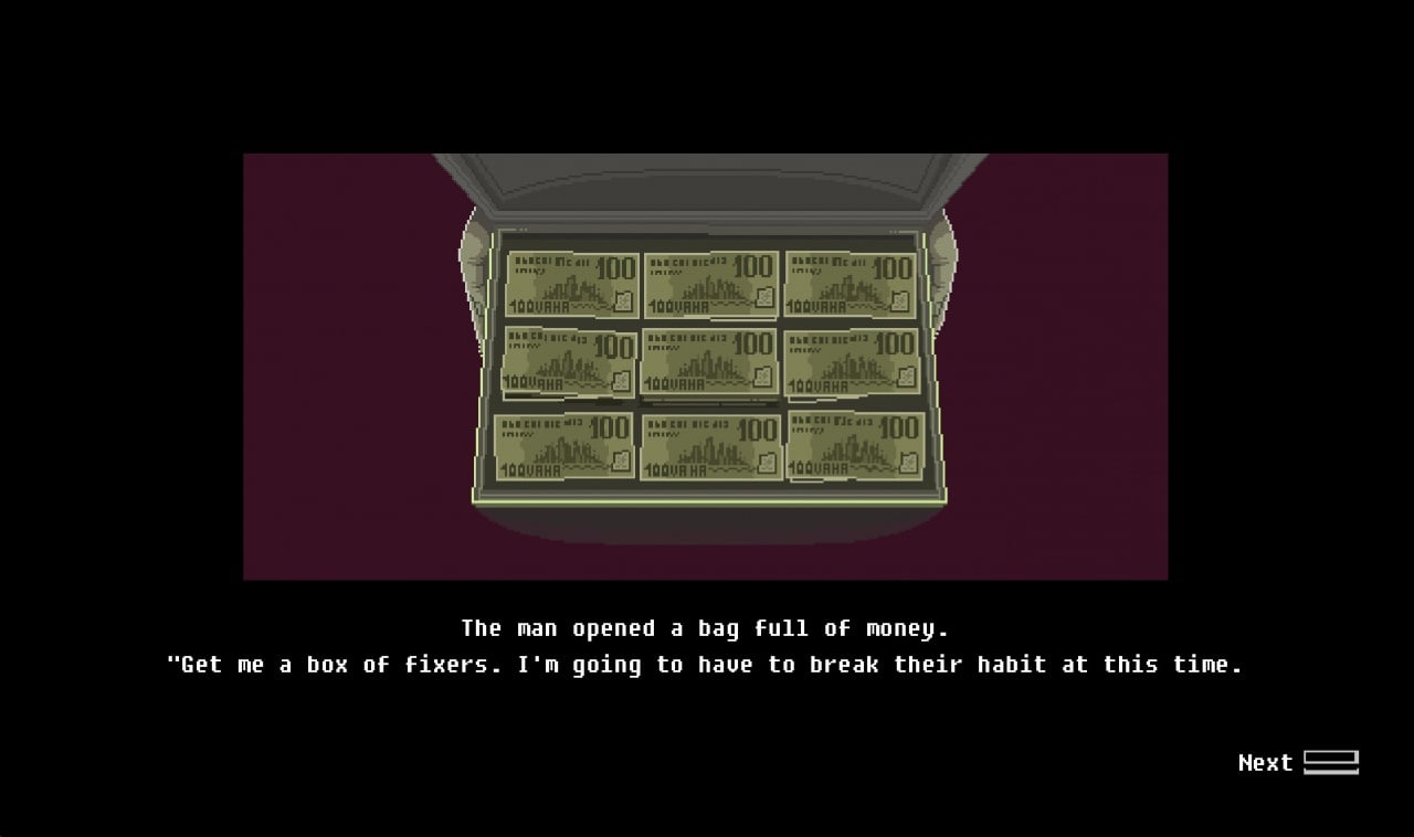 Основа геймплея No Umbrellas Allowed – купить подешевле, отдать подороже, да желательно не переборщить с ценой, иначе можно снизить репутацию предприятия. У клиентуры широкий спектр интересов, который стоит учитывать, предлагая товар. Ценителям истории понравится антиквариат, а коллекционерам предметов искусства легко продать картину. Для декорирования интерьера можно навещать соседский павильон, покупая у зеленоволосой дамочки цветы. У каждого цветка есть имя и особая способность – этакая приманка для посетителей. Поломанные предметы можно починить в мастерской неподалеку – словом, общаться с NPC, как минимум, полезно для бизнеса. Если повезет, персонаж узнает подробности трагедии в НИИ и повлияет на будущее города.