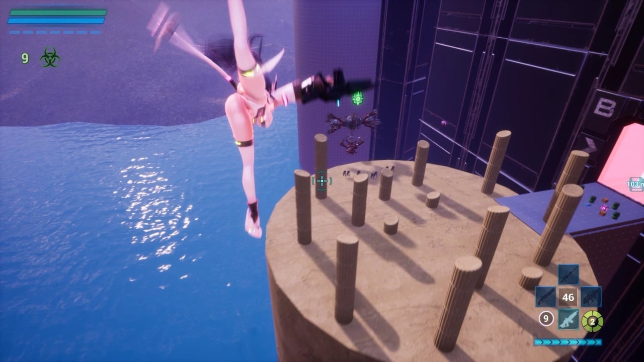 В Zombie Shooting Star есть элементы паркура. Героиня способна ходить, прыгать, делать рывок, выполнять сальто, бегать по стенам, на пару секунд зависать в воздухе, притягиваться к некоторым объектам при помощи футуристического абордажного крюка. Также она умеет водить технику. Здесь дают кататься на автомобилях, велосипедах, мотоциклах и даже танках. Из оружия девушке доступны плазменные пушки, дробовики, снайперские винтовки, пистолеты и другие стволы. Также она может драться в ближнем бою. На транспортных средствах тоже установлено вооружение – от пулемётов до огнемётов. Во время езды можно давить некоторых противников. Кроме стандартных врагов встречаются боссы.