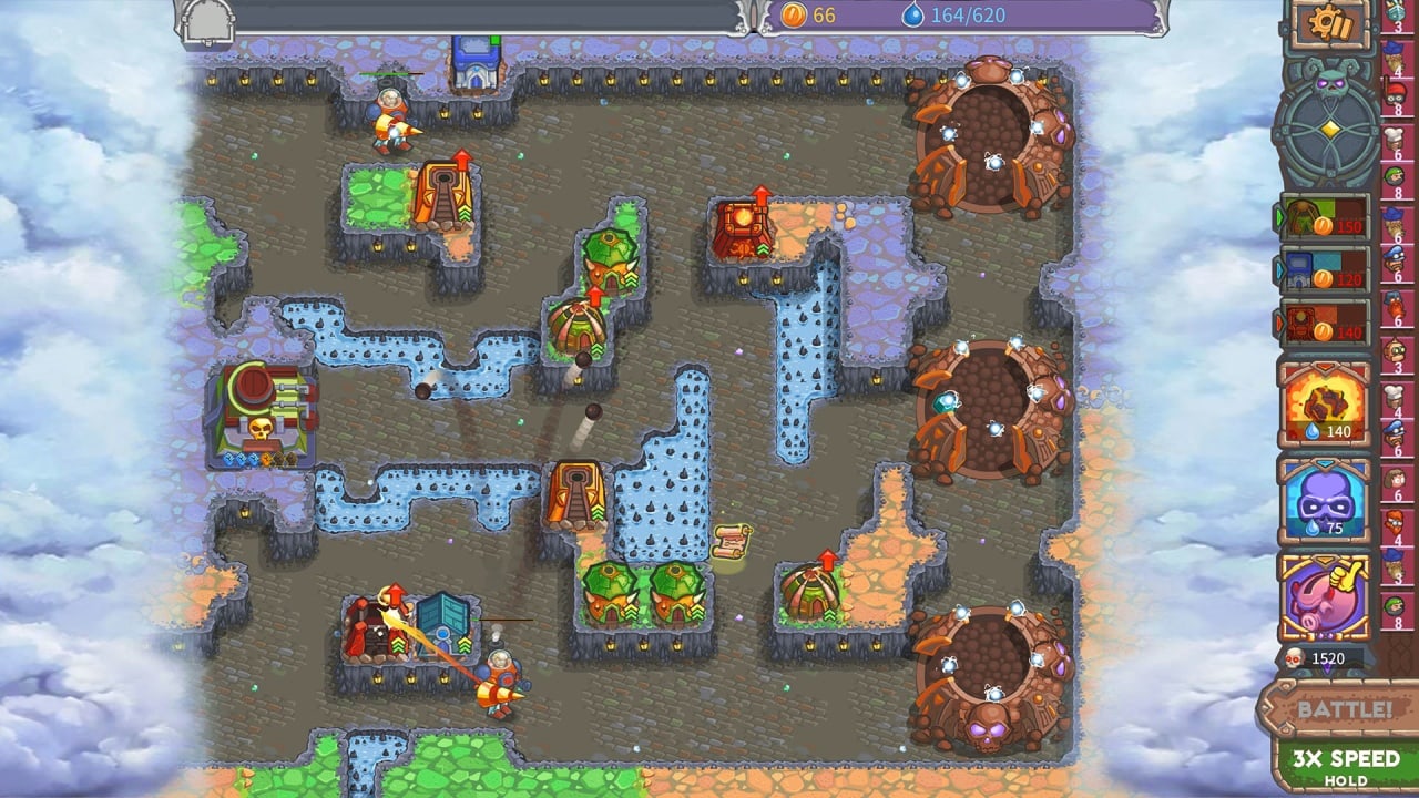 Улучшайте склепы Нежити, прокачивайте храмы Демонов, открывайте более сильные заклинания и обрушьте настоящий гнев небес или земли на своих врагов. На протяжении 27 увлекательных уровней предстоит сражаться в разных условиях с паладинами, ангелами и даже ниндзя. Они выстраивают свою стратегию как в ночное, так и дневное время суток, не давая расслабиться ни на секунду.