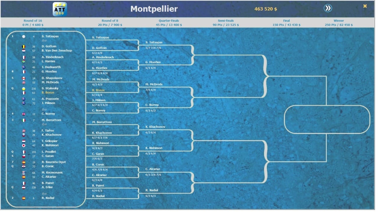 Помимо этого, персонажу понадобится развиваться не только физически, но ментально и умственно. Не менее важно вовремя регистрироваться в турнирах, доступных в соответствии с таблицей рейтинга, применять различные стратегии, грамотно распределять баланс средств. Да и про отдых, семью и путешествия в Absolute Tennis Manager нельзя забывать. Доступны мировые лиги, такие как Кубок Дэвиса, Олимпийские игры, Мейджоры, ИТФ и АТР.