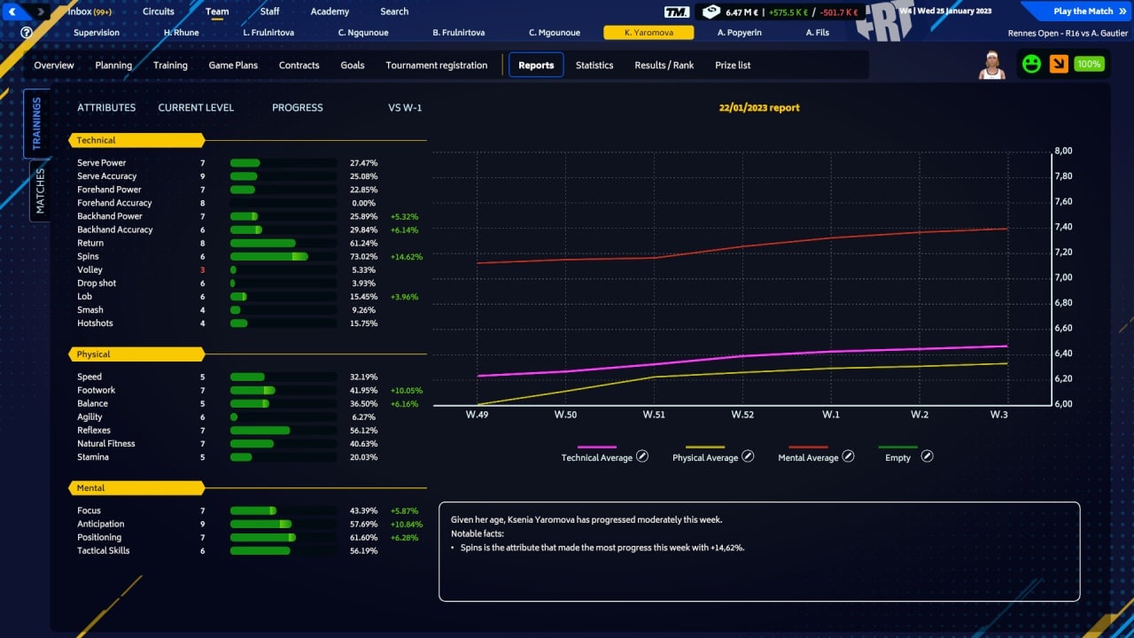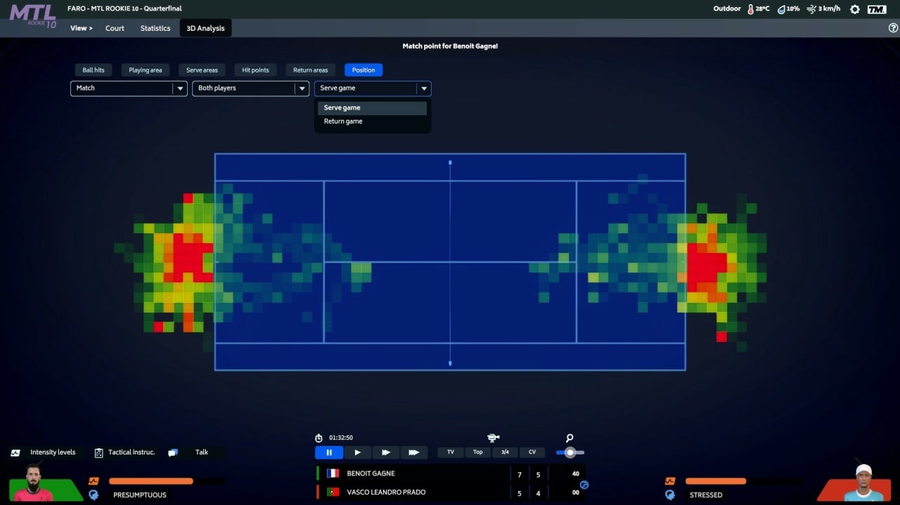 Впечатляющий 3D-движок позволяет погрузиться в гущу событий и тренировать своего виртуального протеже в режиме реального времени во время матчей. Улучшенная анимация и новые 3D-модели в Теннис Менеджер 2023 оживляют навыки с потрясающей детализацией, предлагая новые тактические варианты и поведение теннисистов, которые проверяют стратегические способности. Индивидуальная настройка спортсменов также является ключевой особенностью проекта. Возможности персонализации были расширены, что позволяет создать действительно уникального спортсмена с различными лицами, прическами, аксессуарами и экипировкой.