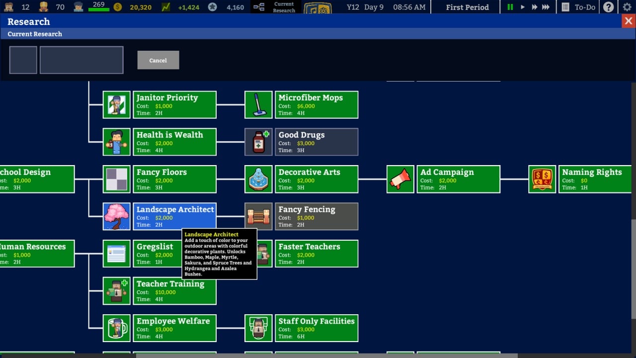 Каждый персонаж, а именно ученик, имеет собственный характер и мотивацию к учению. На мотивацию влияют множественные факторы, например: наличие площадок или развлекательных мест на перемене, столовая, профессионализм учителей и многое другое. Некоторые ученики могут даже влюбляться, что также скажется на их заинтересованности в учебе. Вы можете построить школу под минимум, живя и распределяя деньги с государственных субсидий. Либо постарайтесь заработать деньги со сборов родителей ваших учеников, чтобы сделать как можно больше разнообразных кабинетов и полезностей для учеников. В каждом классе вы способны устанавливать декорации, картины, растения. Постройте дополнительный комплекс, в котором может быть баскетбольная или футбольная площадка, спортивный зал или компьютерный кабинет, который точно повлияет на мотивацию учеников. Наймите настоящих профессионалов своего дела — учителей, которые смогут найти общий язык со своими учениками, а также доступно объяснять термины и давать правильные знания.
