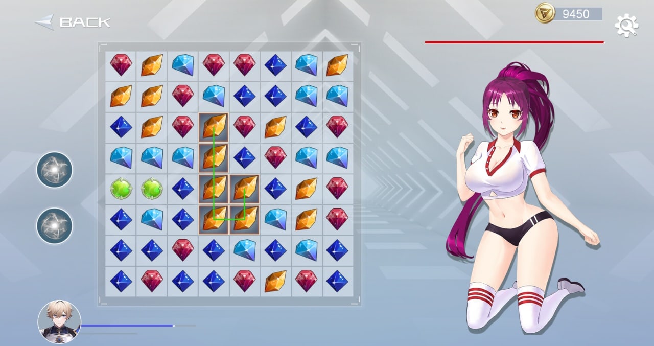 Если игроки соединяют определенное количество ячеек за один раз, генерируются новые взрывные блоки, создавая больше взрывов. Основная цель - снизить HP противника до нуля, чтобы пройти этап. Геймеры получают золотые монеты и опыт после каждого уровня и могут использовать их для улучшения атрибутов своего героя, что облегчает прохождение следующих отрезков. Сюжетная линия рассказывает о девушке, которая только что пережила звездные войны и сбежала на необитаемый остров с таинственным сувениром. Мир за его пределами замерз, и она должна найти девять других девочек с такими же реликвиями, как у нее, чтобы открыть таинственную силу, которая поможет победить пришельцев и возродить планету. Однако вскоре героиня обнаруживает, что находится под контролем злого духа и может сражаться только как сумасшедшая.