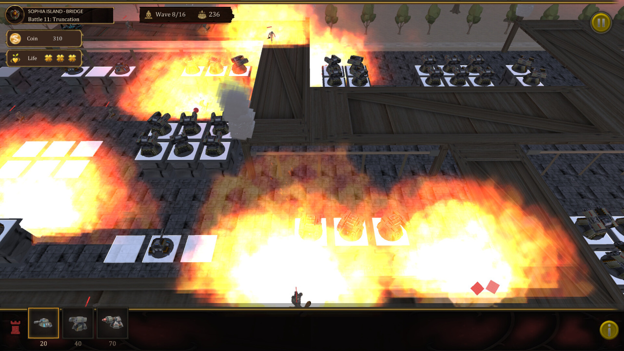 Вас ждет впечатляющий набор из 25 сложных уровней, на каждом из которых представлены различные виды местности и врагов. На протяжении всего путешествия вы встретите широкий спектр грозных врагов, включая драконов, троллей, огров и многих других. Некоторые из этих врагов даже будут приближаться к вашей базе с нескольких направлений, заставляя вас грамотно распределять свое внимание и ресурсы. Выживание зависит от тщательного стратегического планирования и оптимального размещения башен.