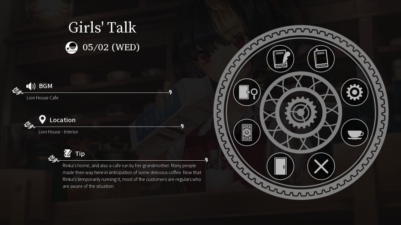 В визуальной новелле Fatal Twelve рассказывается о Шишимай Ринке, старшекласснице, которая раньше владела небольшой кофейней, назвав её Lion House. Она проживала обычную жизнь, но однажды ей пришлось побывать в зоне взрыва. Это произошло в солнечный день, она шла домой вместе с подругой по имени Наоми. Главная героиня, пытаясь спасти жизнь подруги, погибла сама, но помогла другому человеку.