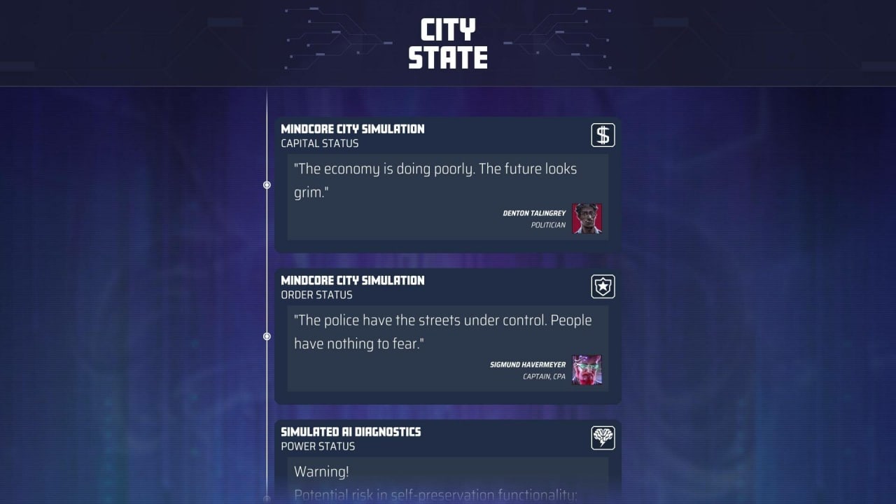 Разнообразный состав из 23 полностью озвученных персонажей добавляет глубину и богатство в историю. Каждый персонаж представляет свои уникальные проблемы и возможности, и игроки должны построить с ними отношения, чтобы направлять их на пути. Цифровой Кодекс наполнен глубокой историей, интересными персонажами и потрясающим киберпанковским окружением, приглашая игроков исследовать мир Катены и раскрыть его секреты. По мере прохождения будут представлены общегородские отчеты с подробным описанием влияния их решений на население. Грань между добром и злом будет стираться, поскольку геймеры будут вынуждены делать сложный выбор, проверяющий их моральный компас.