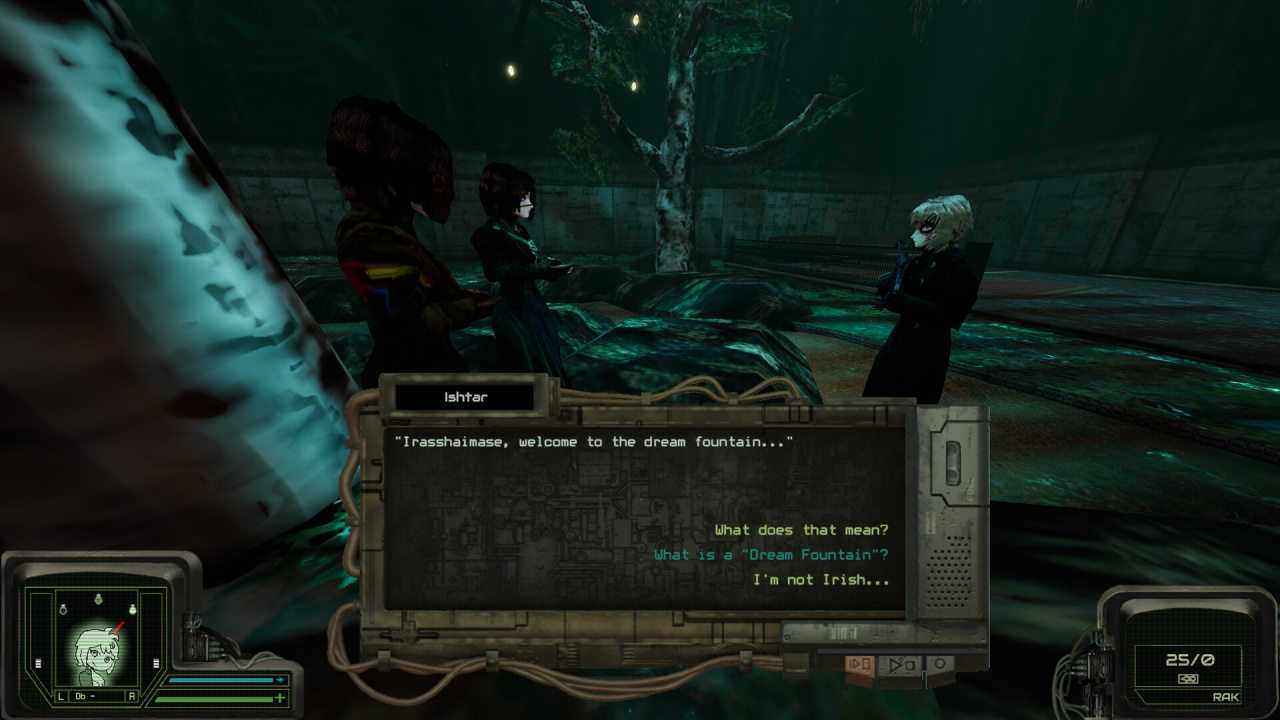 Peripeteia позволяет вживую увидеть потенциальное кибернетическое будущее в городке постсоветского типа. Огромные панельные дома, не менявшиеся столетиями, теперь горят неоновыми красками, а из окон виден зеленоватый свет. Технологии шагнули далеко вперед, а вот менталитет народа не слишком, не поспевая за постоянно меняющимися ценностями и новомодными течениями.