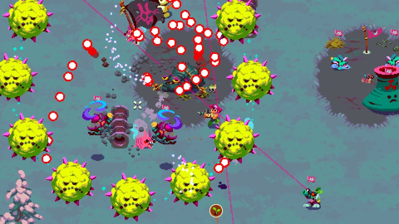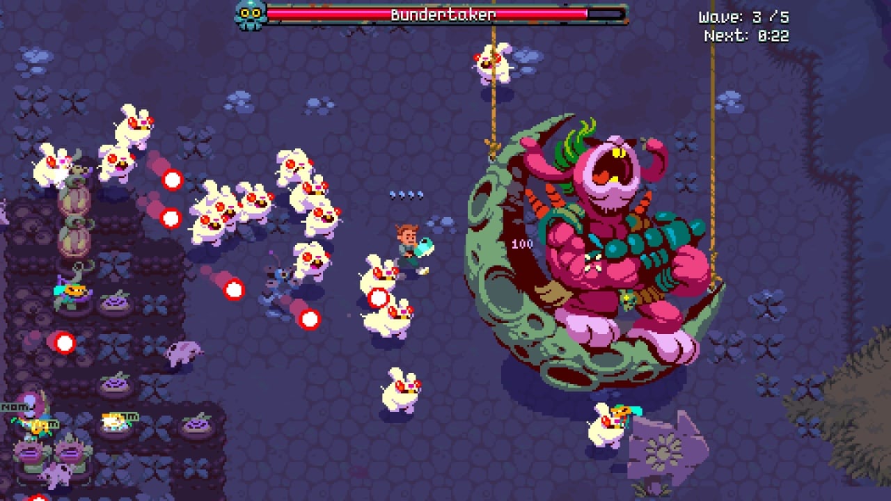 Каждого соперника можно превратить в удобрение, чтобы улучшить рост своих растений. Находите артефакты прошлого, исследуя дальние уголки города. Даже ржавые инструменты и оборудование, найденное днем, можно отлично использовать. Кроме железяк главный герой способен наткнутся на пособия по садоводству, что откроет доступ к новым растениям. Помимо семян, можно завести друзей-животных, например, кур, коров и свиней, отлично помогающих по хозяйству. В этом выживании пригодится любая помощь со стороны кого угодно. Ваше вооружение состоит из тяпки и ведра с водой, с которыми нужно отправиться на соседние участки, чтобы возделать землю. Каждое растение обладает уникальными умениями и способно прокачиваться. Отбивайтесь от волн ужасающих монстров и боссов. Исследуйте мир Atomicrops: Reap What You Crow, чтобы найти пропавшую жену и воссоединить брак, а после сразиться вместе против врагов.